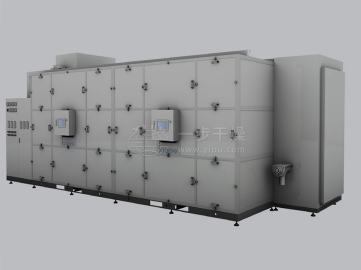 工作原理:污泥经过叠螺机、板框压滤机等机械脱水后,含水率55%~85%的污泥进入干燥机顶部的挤条机,切条成型后落入干燥机内部的传动网带上,干燥的热风从网带底部进入,从下往上穿过网带上的污泥,带走污泥中的水分,带有大量水蒸气的高湿空气从网带顶部经过余热回收换热…